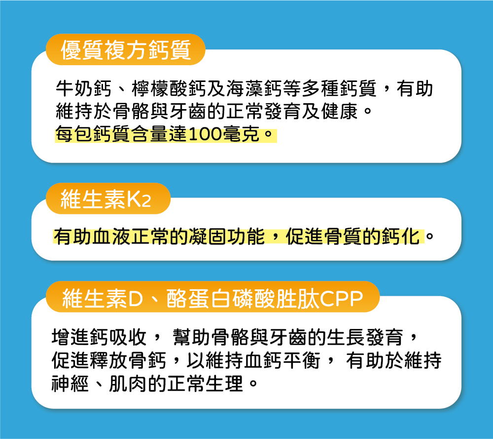 - 每包鈣質含量達100毫克