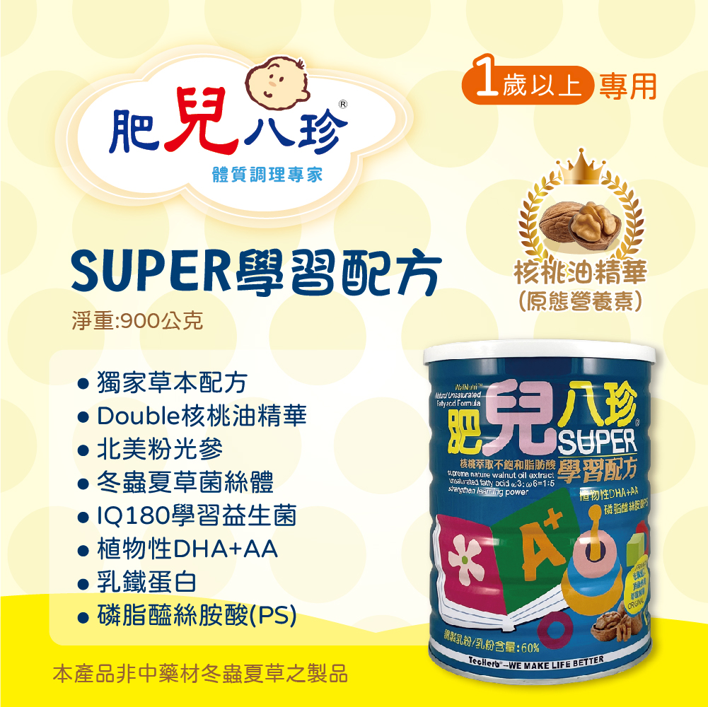 肥兒八珍 SUPER成長奶粉-獨家草本配方/雙倍核桃油/IQ180益生菌