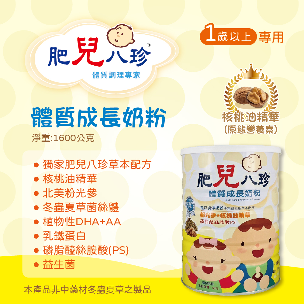 肥兒八珍體質成長奶粉(1歲以上)-肥兒八珍草本配方/核桃油/冬蟲夏草菌絲體/粉光參