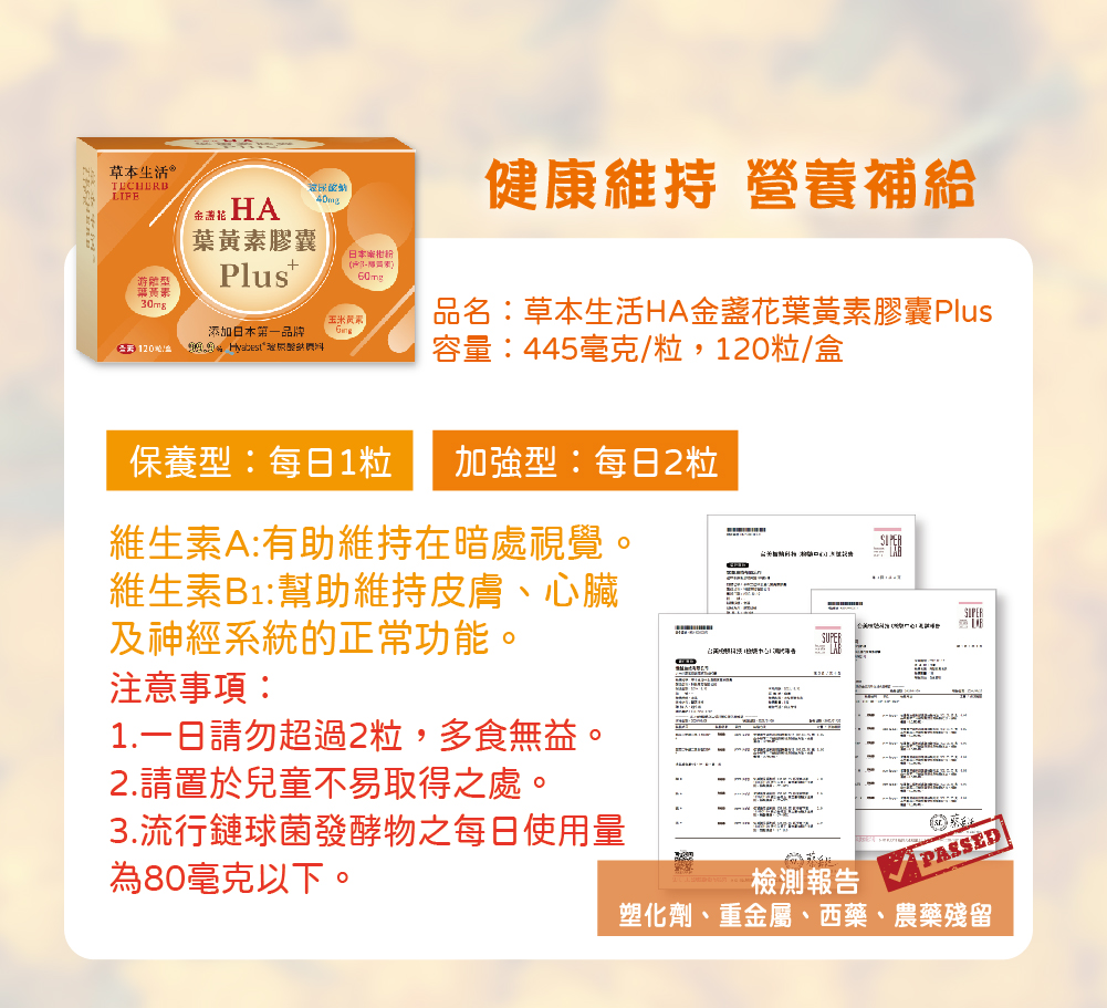 [草本生活]HA金盞花葉黃素膠囊PLUS+(120入)