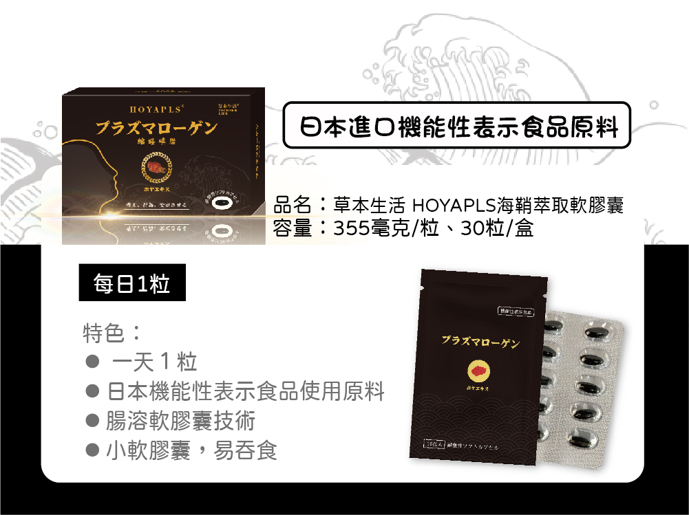 [草本生活]HOYAPLS縮醛磷脂海鞘萃取軟膠囊(思緒清晰/日本機能性表示食品使用原料)