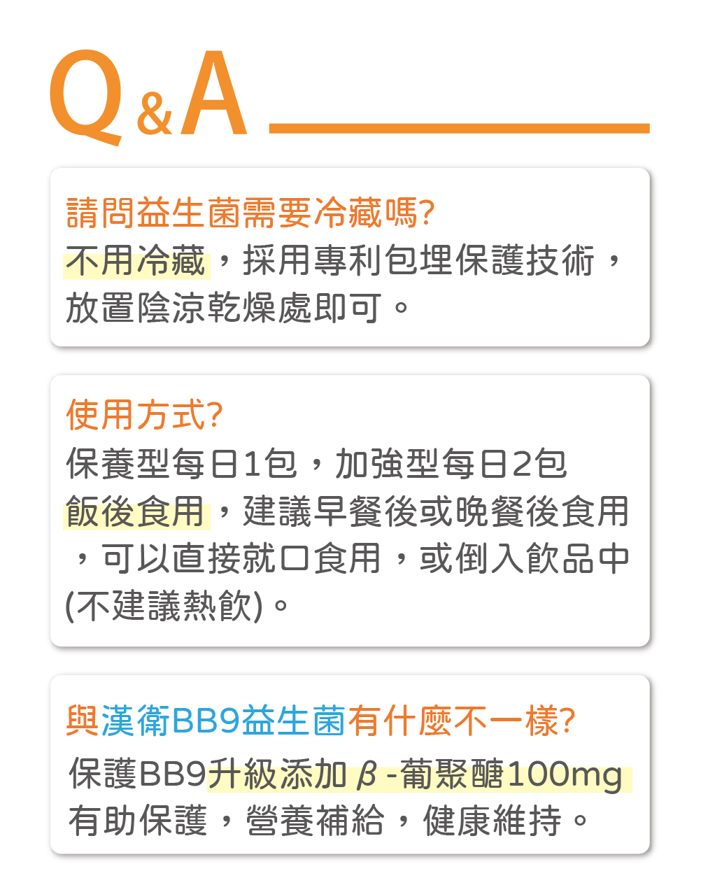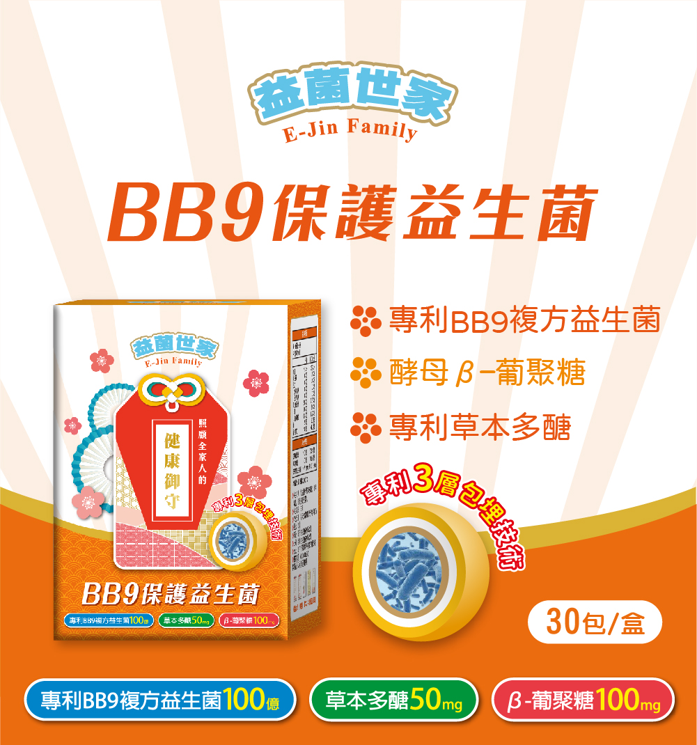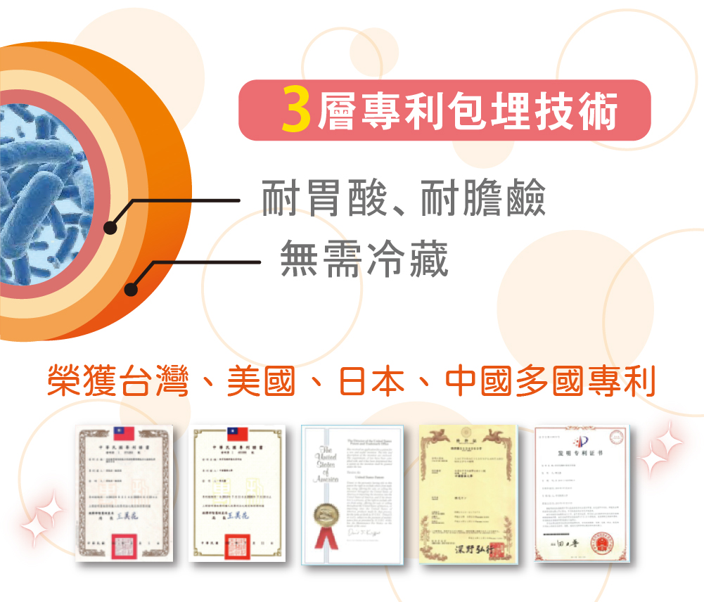 - 榮獲多國發明專利-包埋技術,使BB9益生菌可存放藏溫、無需冷藏。