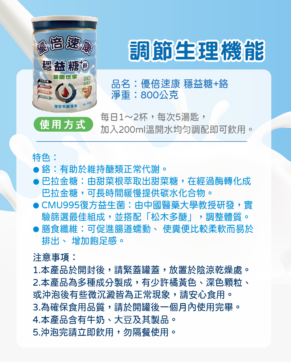 4.本產品含有牛奶、大豆及其製品。