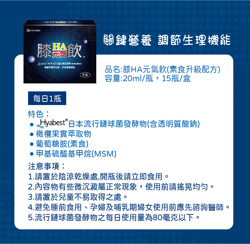 膝HA元氣飲-玻尿酸鈉/橄欖果實/葡萄糖胺(全素)