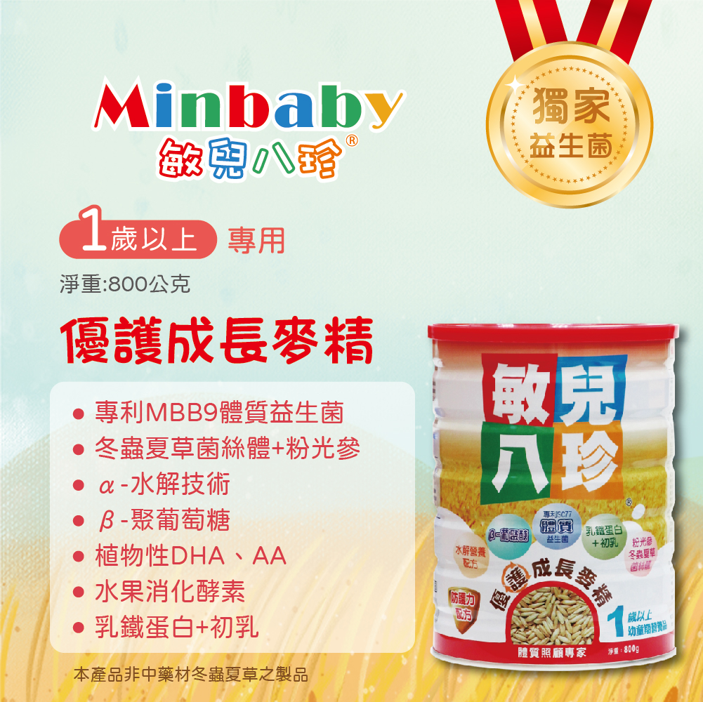 敏兒八珍 優護成長麥精-MBB9益生菌/β-葡聚醣/冬蟲夏草菌絲體/粉光參
