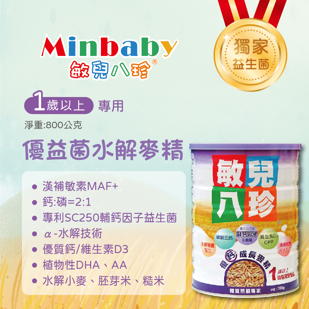 敏兒八珍 優鈣成長麥精-SC250輔鈣因子益生菌/維生素D3